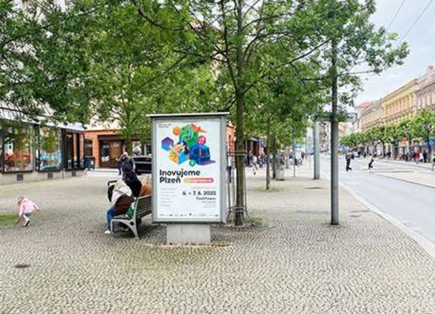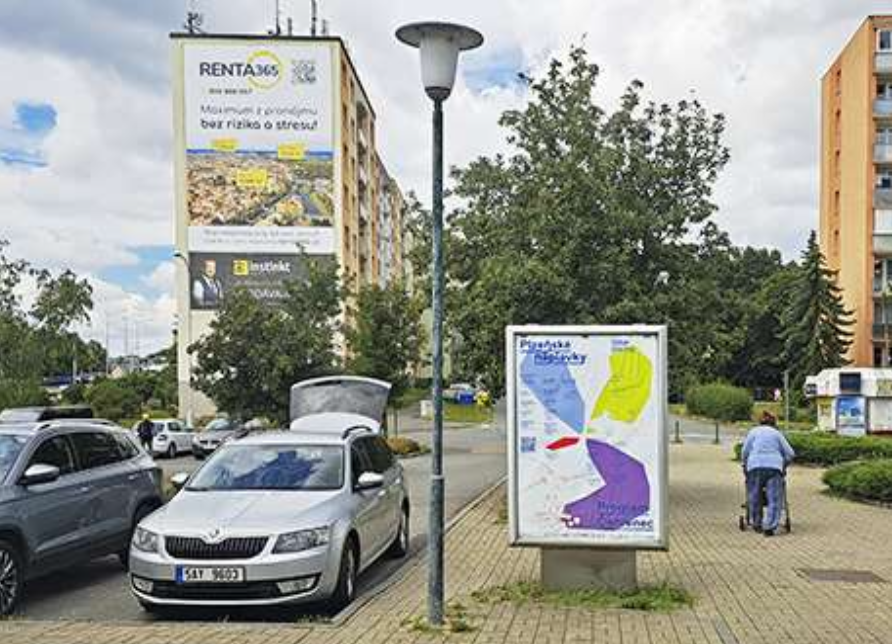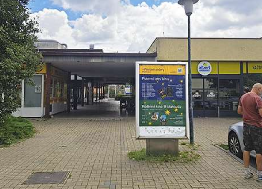 vedle vchodu do OC AREA Bory
