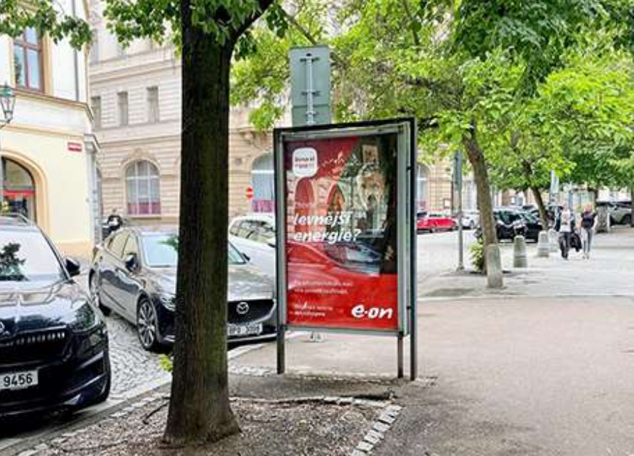 Digitální, 896x1280px. OC Úslava, vjezd z Rokycanské